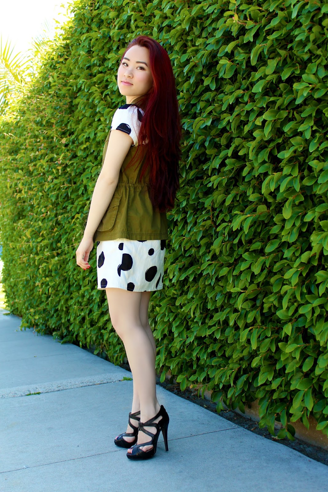 Polka dots are such a fun print to wear, though I feel they can be a bit overwhelming at times. I like that the ones on this shift dress are larger, which in my opinion, makes the print less busy. I contrasted the usually feminine print with a more rugged safari vest to balance out the look. I bought this vest a while ago, but find that it's a very versatile piece in my closet. I've worn it so many ways, and it really has the ability to change the look of an outfit and tone down any fussiness.